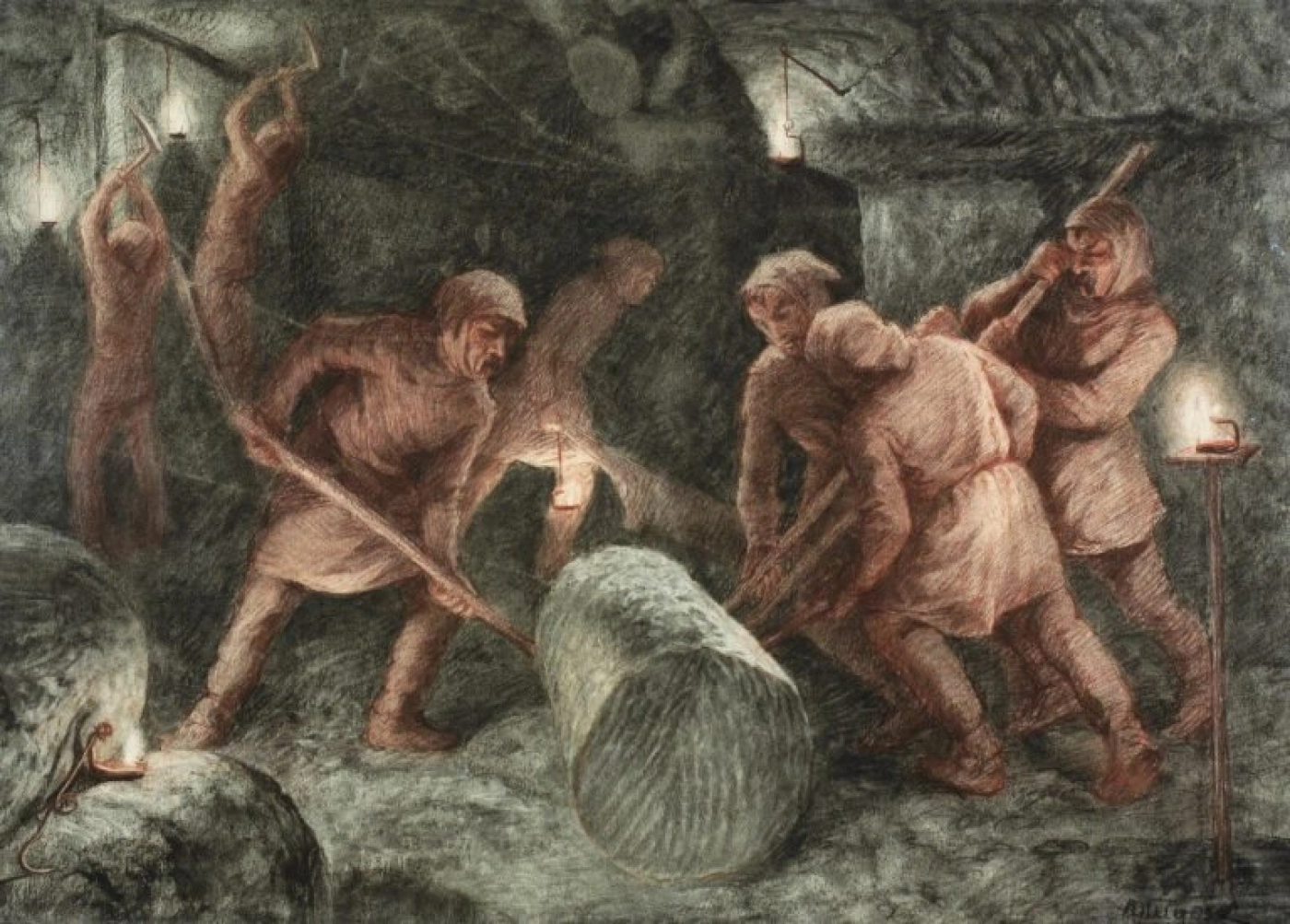 Postup byl pracný a pomalý. Želízkem a mlátkem se za 6 hodinovou směnu na chodbě o profilu zhruba 2x1 m vylomilo asi 2,5 cm horniny. Chodby se razily proto většinou jen o průlezných profilech 160x50 cm.