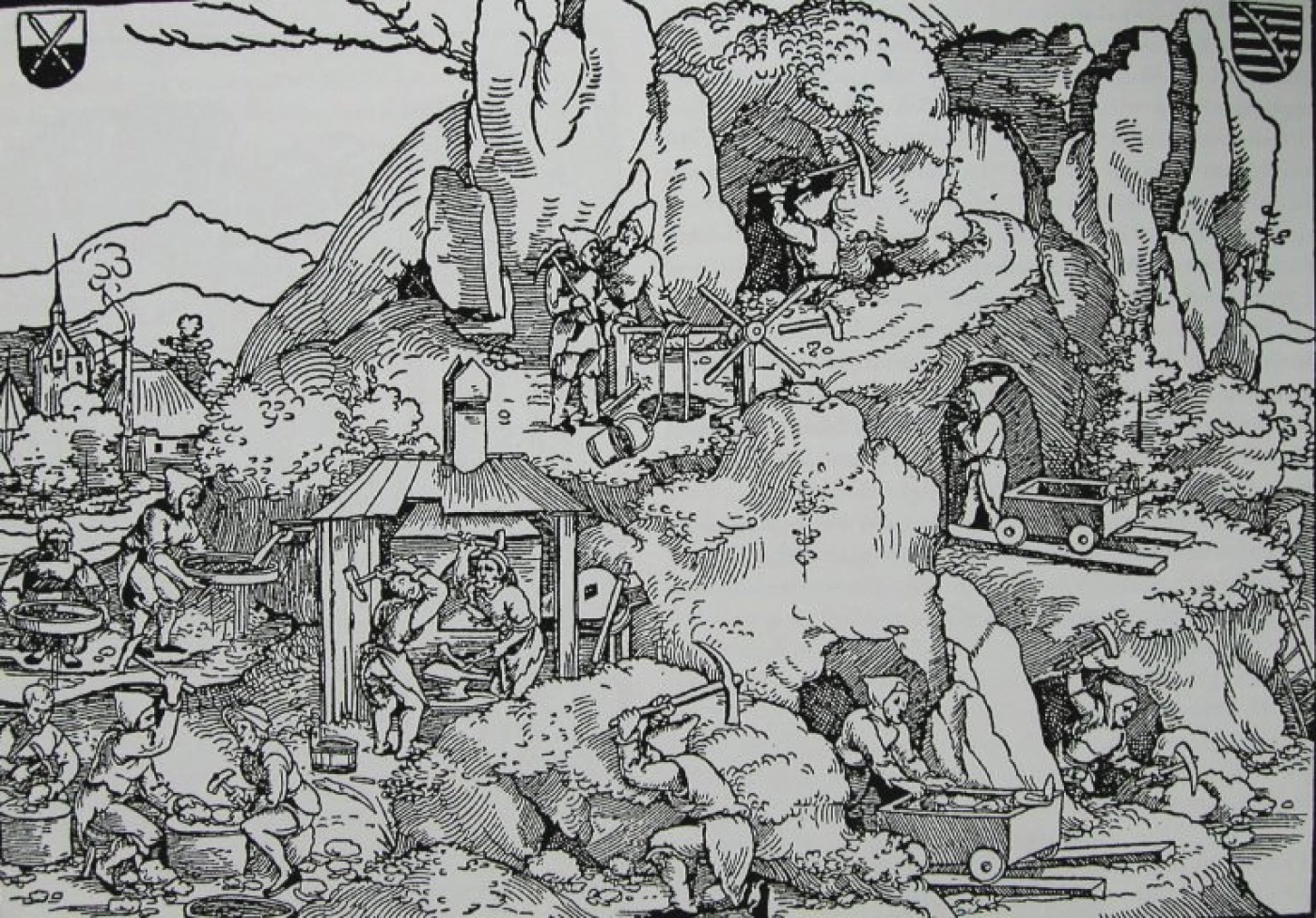 Hlubinné dobývání v českých zemích započalo na přelomu 13. a 14. století. Otvírka ložiska se dělala kombinací svislých nebo úklonných jam a štol. Způsob jejich rozmístění byl dán průběhem a morfologií ložiska a velikostí dolových měr.